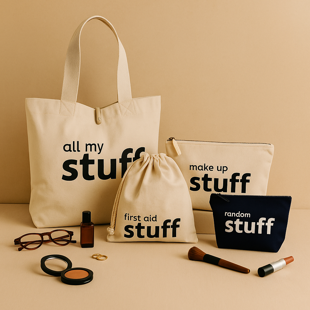 From makeup to first aid to the totally random bits you can’t live without, our Stuff Collection has a bag for it. Durable canvas, bold lettering, and just the right amount of sass make these pouches and totes perfect for keeping life organized (or at least pretending it is).